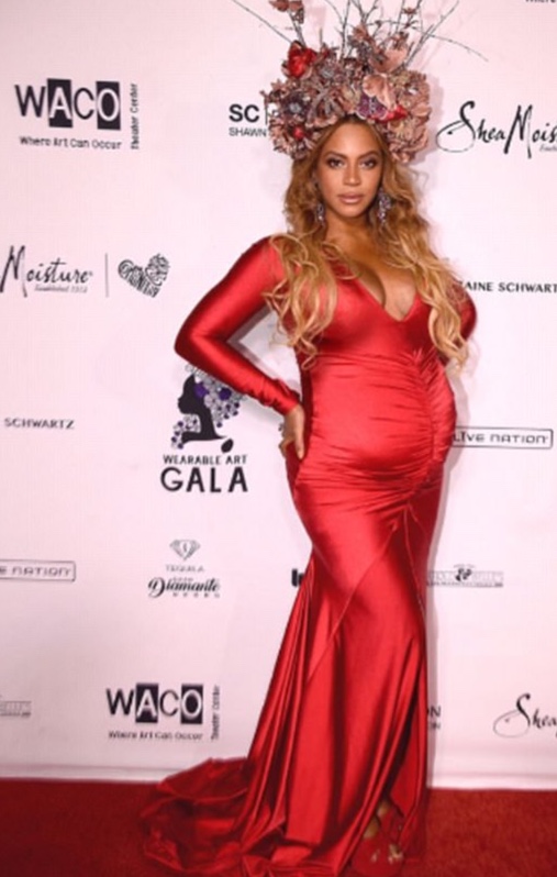 Beyonce var viðstödd Wearable Art Gala í Los Angeles á laugardaginn var með Jay Z. Þrátt fyrir að hún hafi komið inn bakdyramegin en ekki á rauða dreglinum voru augu allra á henni, enda var hún stórglæsileg! Eins og flestir vita gengur hún með tvíbura og ekki fer það framhjá neinum en hún er afskaplega falleg með barni (börnum!)