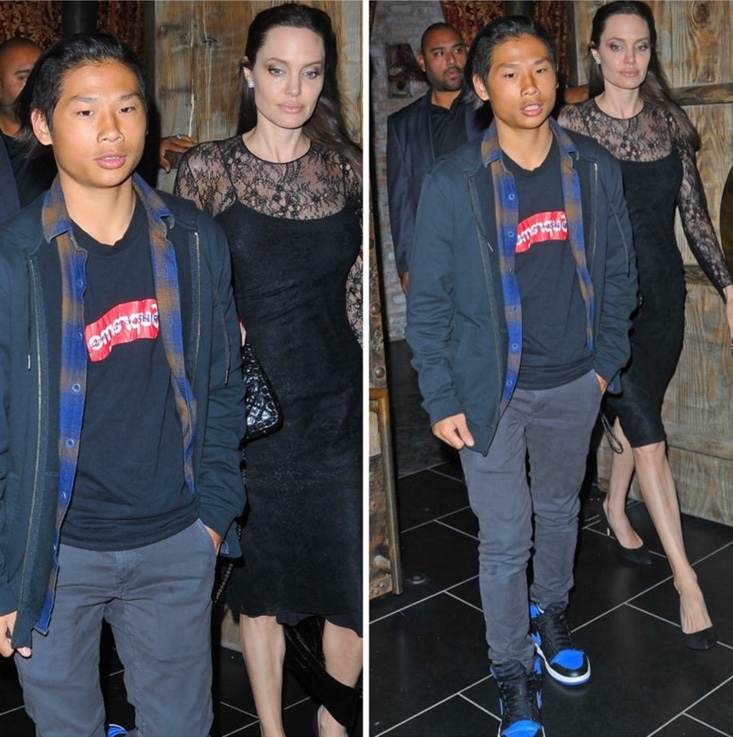 Sjáðu hvernig Pax lítur út í dag! Í gærkvöld fór leikkonan Angelina Jolie út að fagna mæðradeginum með syni sínum Pax sem er orðinn 13 ára gamall. Aðdáendur hafa lýst yfir hversu hissa þeir eru á hvað hann er orðinn stór! Angelina leit afar vel út (eins og alltaf reyndar!) í svartri blúndu og í hælum. Fóru þau á Tao sem er virkilega flottur staður í Los Angeles ásamt lífvörðum.