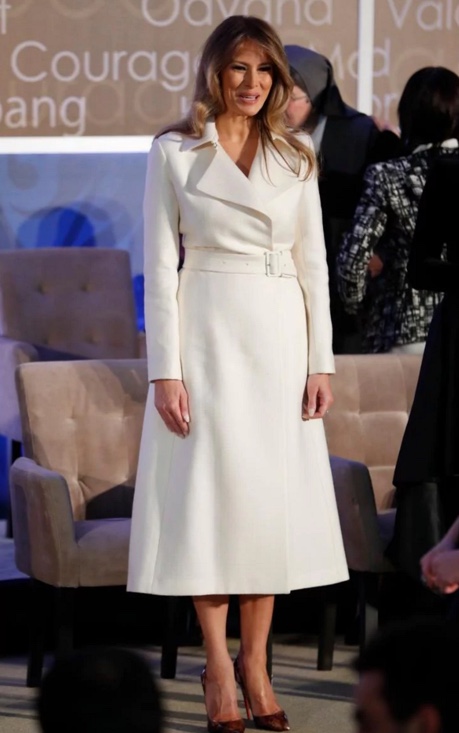 Melania Trump vekur athygli hvar sem er, enda hefur hún einfaldan, fágaðan og glæsilegan stíl. Í nýafstaðinni heimsókn forsetahjónanna erlendis var hún afskaplega hrifin af Dolce&Gabbana og Michael Kors. Einnig er hún aðdáandi Karl Lagerfeld og Ralph Lauren. Eins og sjá má á meðfylgjandi myndum er eiginlega alveg sama hverju konan klæðist – hún er alltaf glæsileg.
