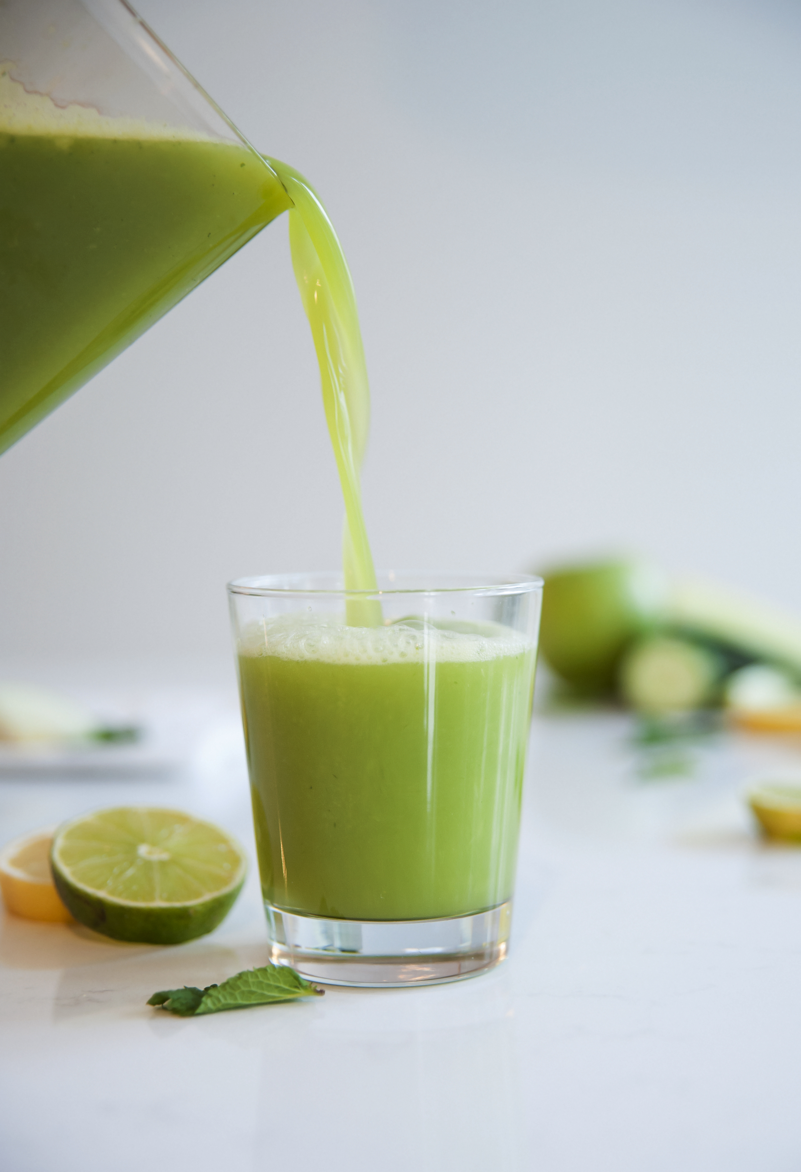 Þessi drykkur inniheldur myntu, sem er frábær fyrir bætta meltingu og einbeitingu. Það má sjálfsagt nota steinselju í staðinn eða jafnvel bæði fyrir ævintýragjarna en steinselja er talin vera ein helsta fegurðarfæðan.