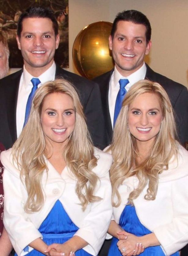 Josh og Jeremy vinna saman í iðnaðarfyrirtæki og segja að fyrrverandi kærustur hafi aldrei skilið þá. „Við eiginlega vissum alltaf að við myndum ekki kvænast nema tvíburum.“ Briana og Brittany vinna saman á lögfræðistofu og voru líka sannfærðar um að þær myndu giftast tvíburum.