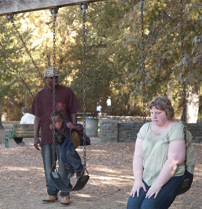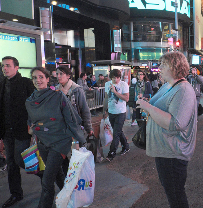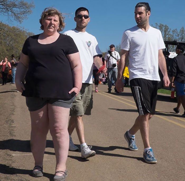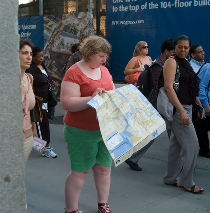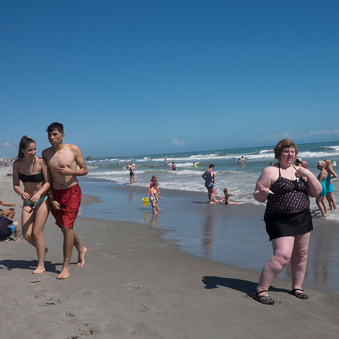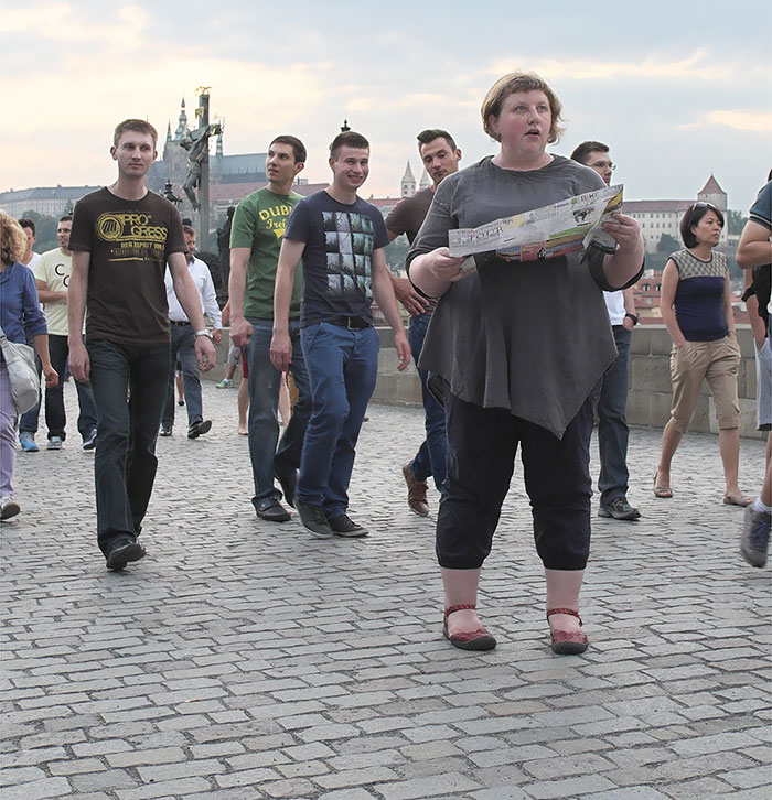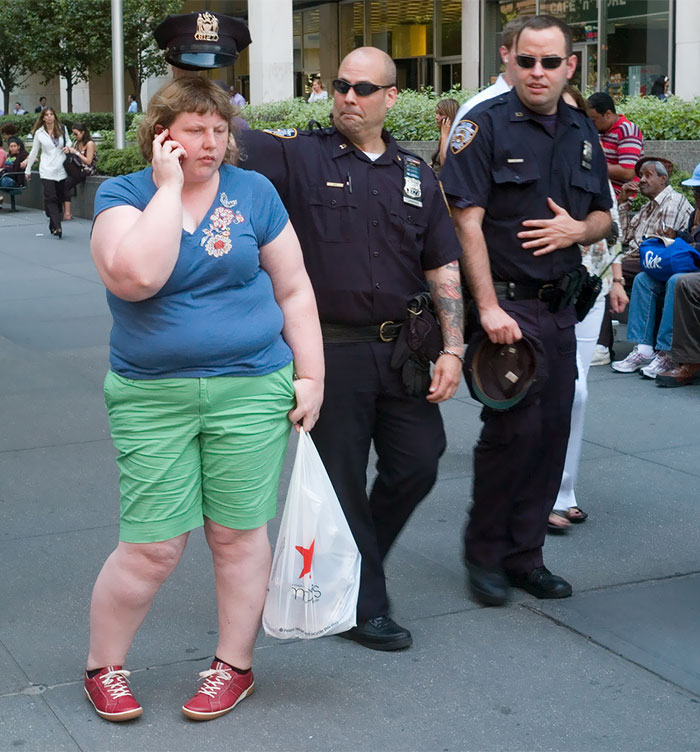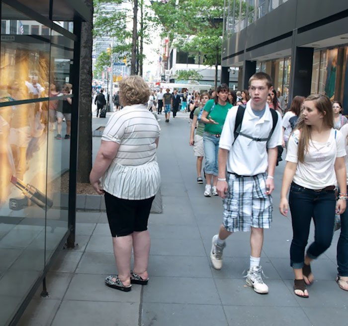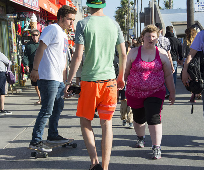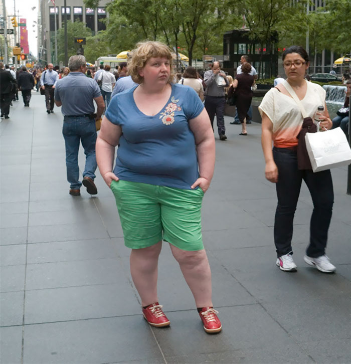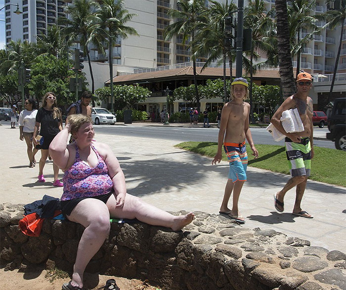 Sýna myndirnar hvernig fólk bregst við með augngotum og jafnvel flissi þegar það verður á vegi manneskju í ofþyngd. Setti hún upp þrífót til að ná myndum af viðbrögðum fólks. Klæddist hún aldrei ögrandi fatnaði eða slíku þegar hún vann í verkefninu og eru myndirnar frekar sláandi.