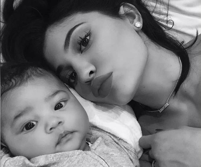 Kylie hefur verið „skömmuð“ á samfélagsmiðlum fyrir að vera ímagabelti aðeins tveimur mánuðum eftir fæðingu, en henni ku vera slétt sama hvað fólki finnst. Þetta er jú fjölskylda sem á mikið undir útlitinu, ekki satt?