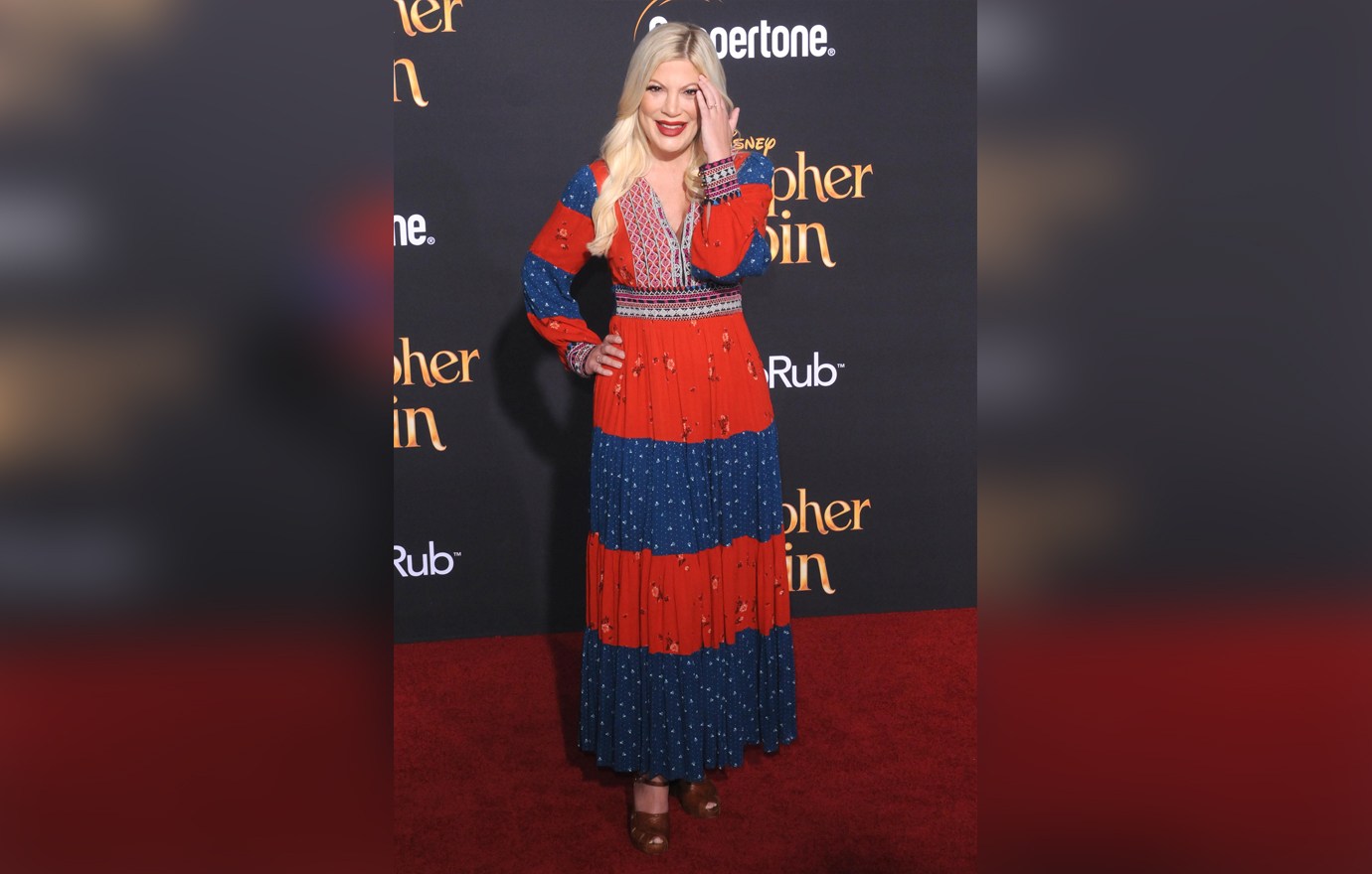 Fyrrum Beverly Hills 90210 leikkonan, Tori Spelling, mætti á frumsýningu myndarinnar Christopher Robin í Los Angeles á mánudag en eiginmanninn var hvergi að sjá. Dean McDermott og Tori hafa átt í ýmsum erfiðleikum og oftar en ekki hafa þau sést rífast á almannafæri.