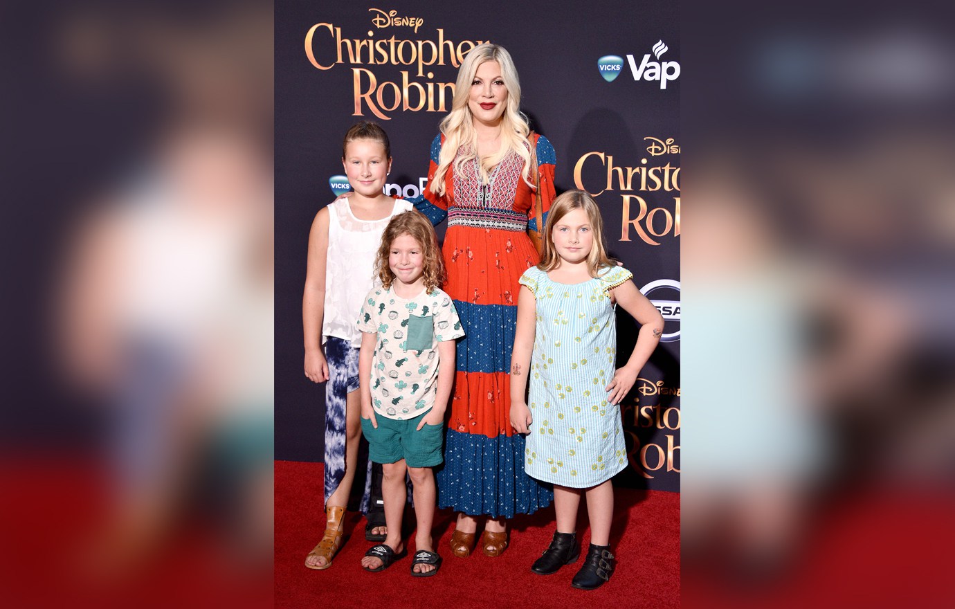 North America Rights Only - Los Angeles, USA -20180730- Celebrities attend the premiere of Disney's 'Christopher Robin' at Walt Disney Studios. -PICTURED: Stella McDermott, Finn McDermott, Tori Spelling, Hattie McDermott -PHOTO by: Lionel Hahn/Abaca/Instarimages.com This is an editorial, rights-managed image. Please contact Instar Images LLC for licensing fee and rights information at sales@instarimages.com or call +1 212 414 0207 This image may not be published in any way that is, or might be deemed to be, defamatory, libelous, pornographic, or obscene. Please consult our sales department for any clarification needed prior to publication and use. Instar Images LLC reserves the right to pursue unauthorized users of this material. If you are in violation of our intellectual property rights or copyright you may be liable for damages, loss of income, any profits you derive from the unauthorized use of this material and, where appropriate, the cost of collection and/or any statutory damages awarded