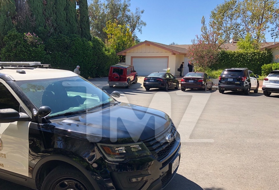 Fyrir utan heimili Mac Miller í dag. Dánardómstjóri og lögreglan mætt á staðinn (Mynd: TMZ)