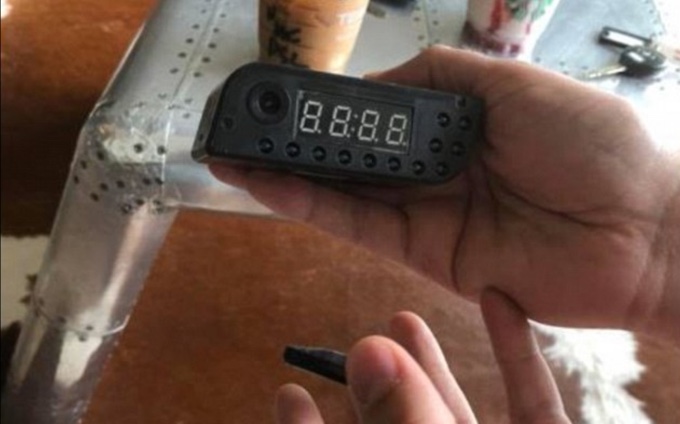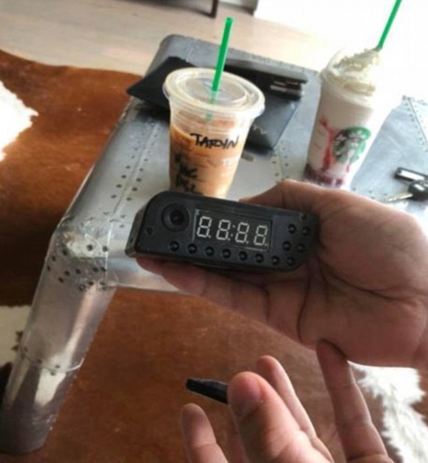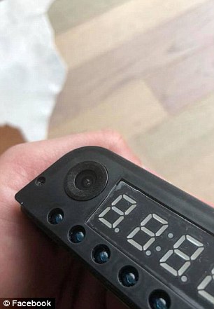 Þau uppgötvuðu vekjaraklukkuna sem hafði plast að framan og þegar það var fjarlægt var greinilega um myndavél að ræða eins og sjá má á meðfylgjandi myndum.