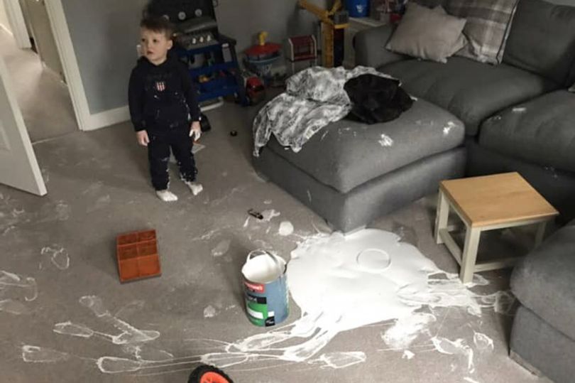 Móðir nokkur fékk „áfall“ þegar fimm ára sonur hennar tók málningarfötu og dreifði um stofuna, sem var nýuppgerð. Faye Comber lýsir því hvernig það tók Olly ekki nema fimm mínútur að rústa stofunni…gersamlega. Faye (25) var að gera sig tilbúna til að fara út með vinum sínum þegar hana grunaði að Olly væri að gera eitthvað af sér, enda var hann einstaklega hljóður.