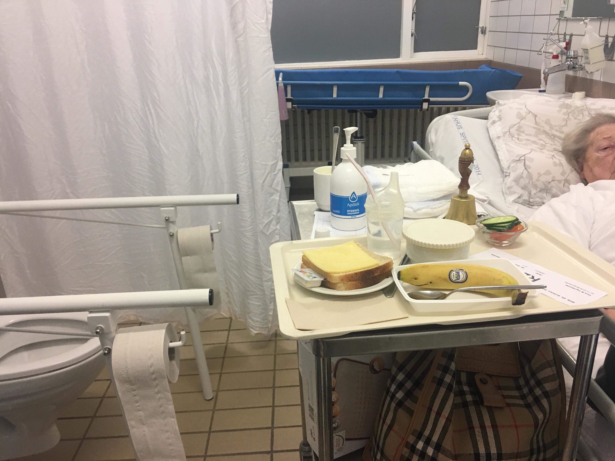 Nú liggur hún, 92 ára, grátandi inni á klósetti með KÚABJÖLLU á borðinu til þess að gera vart við sig ef hana vantar aðstoð.