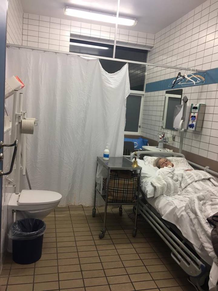 En í kvöld var okkur sagt að hún yrði flutt á aðra deild þar sem annar sjúklingur þyrfti rúmið hennar. Þegar þangað kom var ekkert pláss fyrir hana þar og var hún því sett inn á salerni og verður þar næstu nætur eða þangað til rúm losnar.