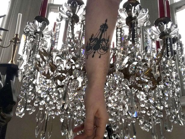 Amanda sem er með eitt annað tattoo – bandaríska fánann á hægri upphandlegg, sagði um Lumiere (ljósakrónuna): „Þegar ég sá Lumiere í fyrsta skipti vissi ég að hún væri sú eina fyrir mig – þetta var ást við fyrstu sýn.“