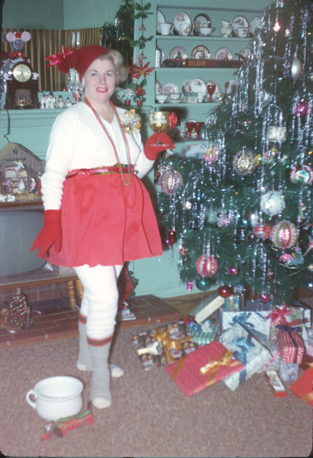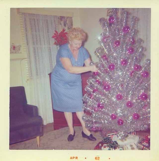 Jólatréð er eitt mikilvægasta skrautið fyrir hátíðarnar, að sjálfsögðu. Þannig – hvernig hafa jólatrén verið í gegnum tíðina og hvernig hafa miðadra konur látið mynda sig við jólatrén? Þetta er mikilvæg spurning! Auðvitað viljum við öll mynd af okkur með jólatrénu. Þessar miðaldra konur eru bara alveg eins og við.