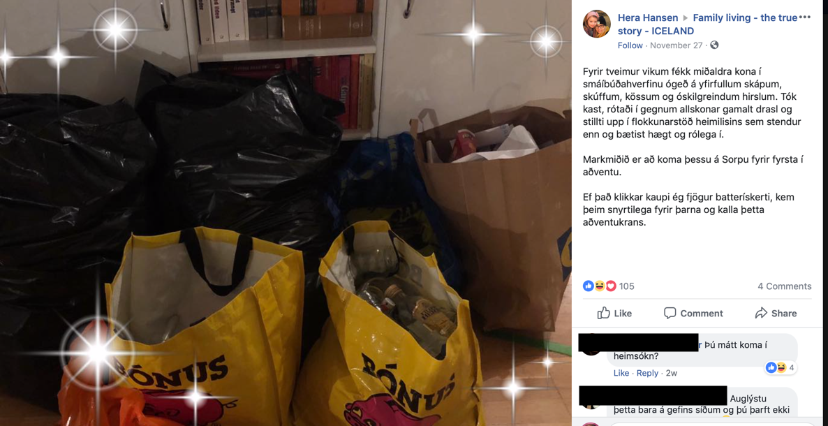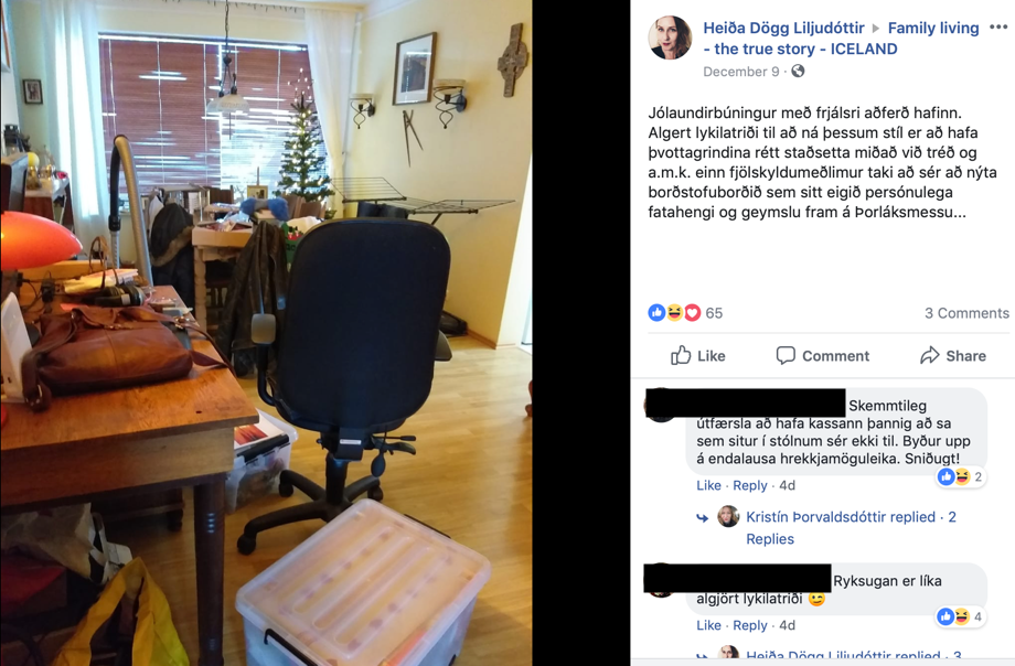 Hafa ber í huga að hópurinn er opinn og því getur hver sem er séð það efni sem hér er birt. Það er líka einn af tilgangi hópsins og deila með umheiminum hvernig venjuleg heimili geta litið út. Smá raunveruleiki innan um frábærar myndir úr vel lukkuðum fríum, fallegum matarboðum og nýuppgerðum eldhúsum.