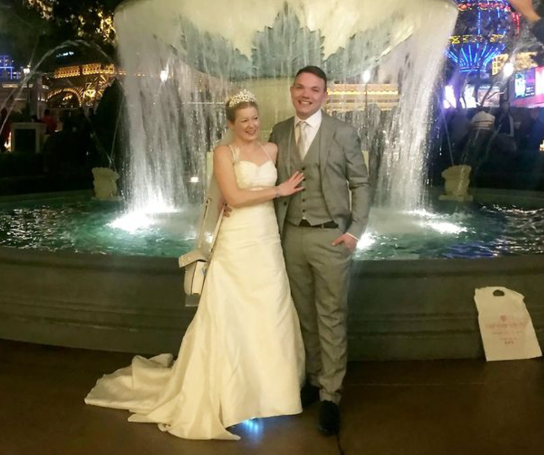 Þau gengu svo í það heilaga á Bellagio. Sarah segir: „Kjóllinn minn var ótrúlegur. Hann var risastór. Ég labbaði upp og niður „Strip-ið” í honum. Athöfnin var æðisleg, presturinn var Roland August og hann hefur verið í myndbandi hjá Katy Perry. Við höfðum ekki skrifað nein heit en hann skrifaði þau fyrir okkur þrátt fyrir að hafa aldrei hitt okkur.”
