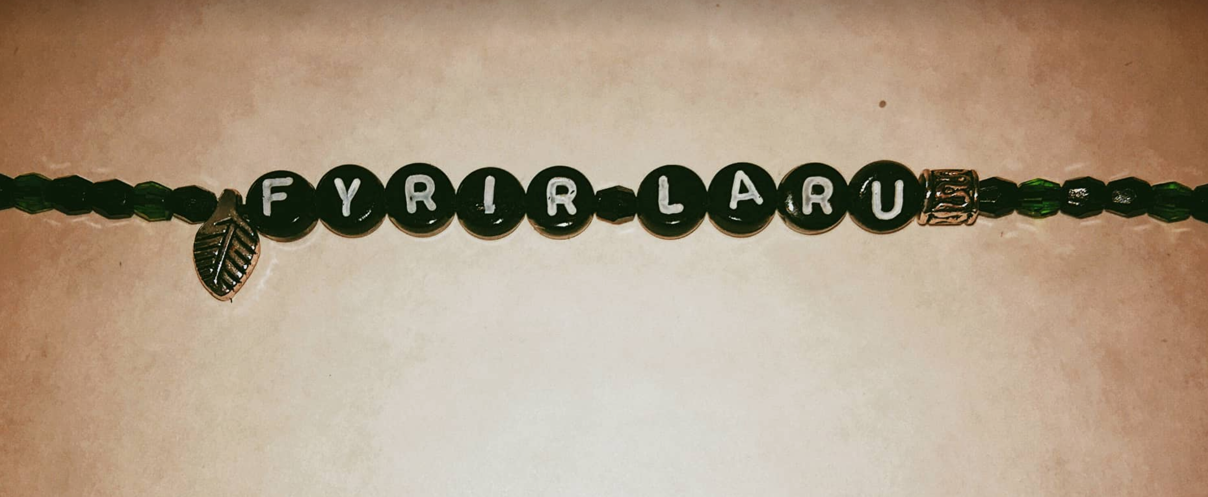 Lára hefur takmarkaða sjón og er því mjög hæfileikarík að ná að perla svo mikið af fallegum armböndum:
