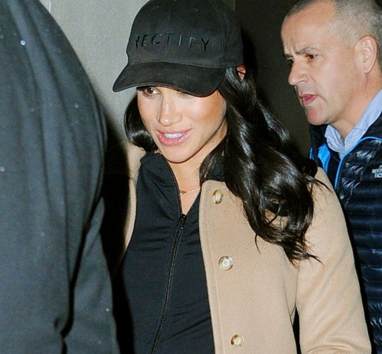 Meghan sem eyddi góðum stundum með vinkonum sínum, m.a. Serenu Williams og Amal Clooney leit út fyrir að vera mjög hamingjusöm og knúsaði bumbuna sína eins og alltaf.