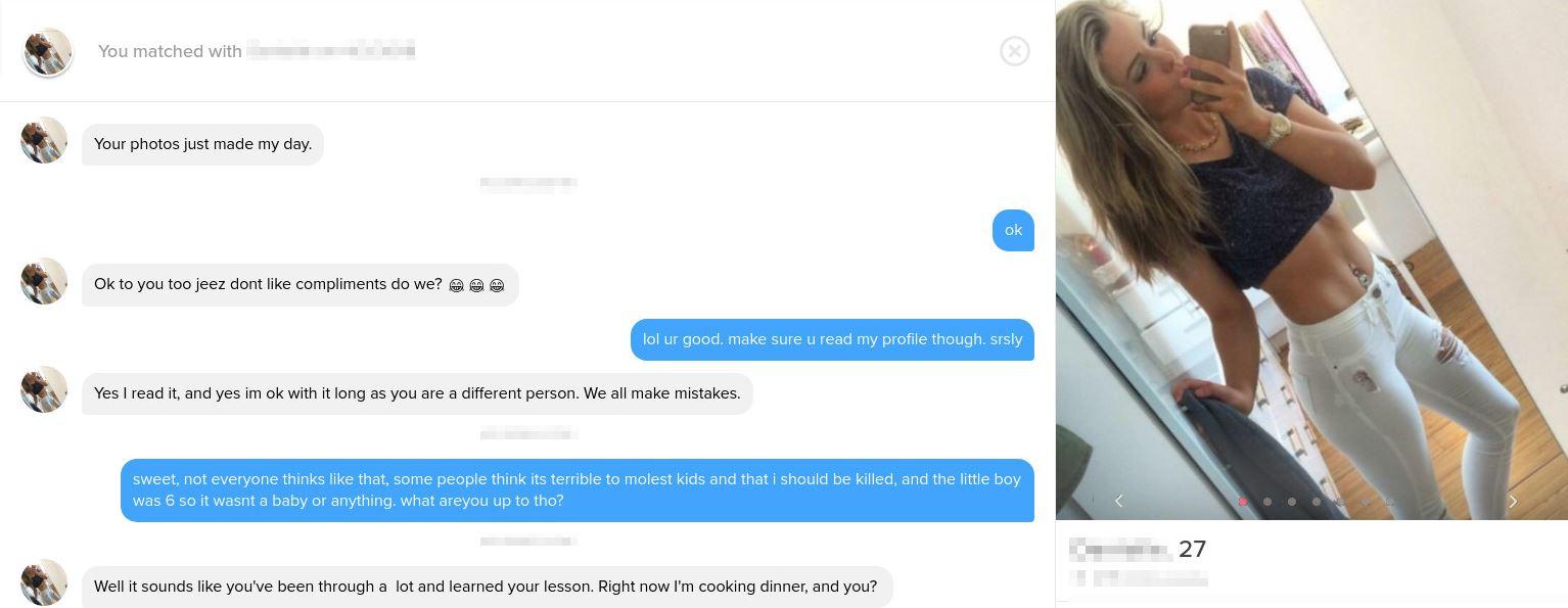 Svo er þessi…hún áttar sig varla á hvað hann er að segja og vill bara fyrirgefa honum mistökin. Þó hann segi að hann hafi níðst á sex ára dreng. Og hann vilji bara sofa hjá henni. Hún virðist bara vera spennt að hitta þennan gaur sem er á leið í fangelsi fyrir alvarlega glæpi.