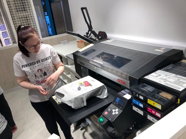 Hægt er að prenta út á stuttermaboli í búðinni það sem fólk óskar.