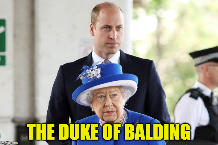 „Í alvöru, eitt af því skelfilegasta sem ég hef upplifað í lífinu var að horfa á William prins verða sköllóttann,” grínast hann. „Hann er að verða f***ing Bretakonungur!”