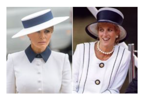 Melania þótti minna mjög á Díönu prinsessu í því sem hún klæddist í dag, en hún var í dragt sem hönnuð var af Herve Pierre, fyrir Dolce gabbana.