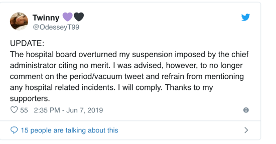 Eftirfarandi tíst eru frá Twinny, hjúkrunarfræðingi: