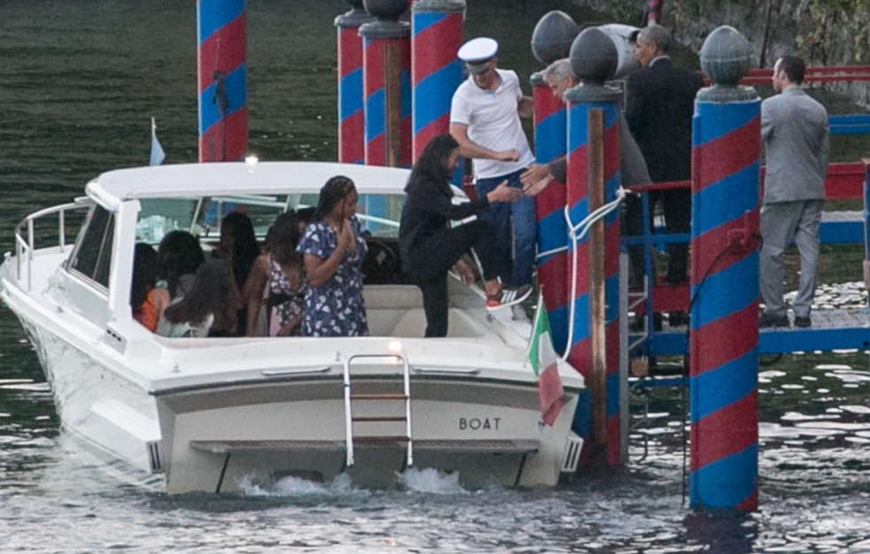 Amal var þarna líka ásamt Michelle Obama og dætrunum Sasha og Malia. Þau hafa verið í fríi í Evrópu síðastliðna daga. Þau hafa verið í Suður-Frakkland og ferðast um Ítalíu.