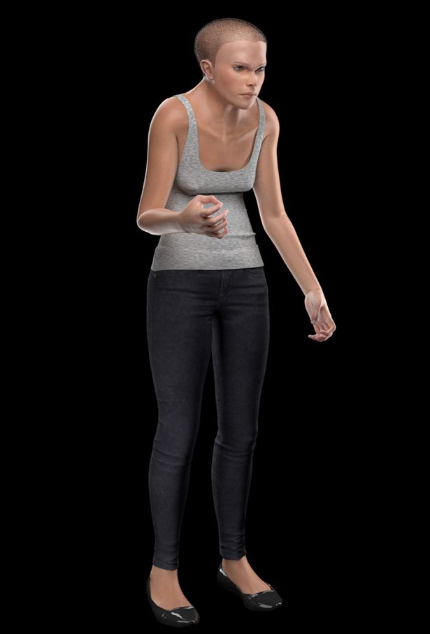 Hendur hennar hafa þróast í átt að krumlu og olnboginn er í 90° vegna snjallsímanotkunar.