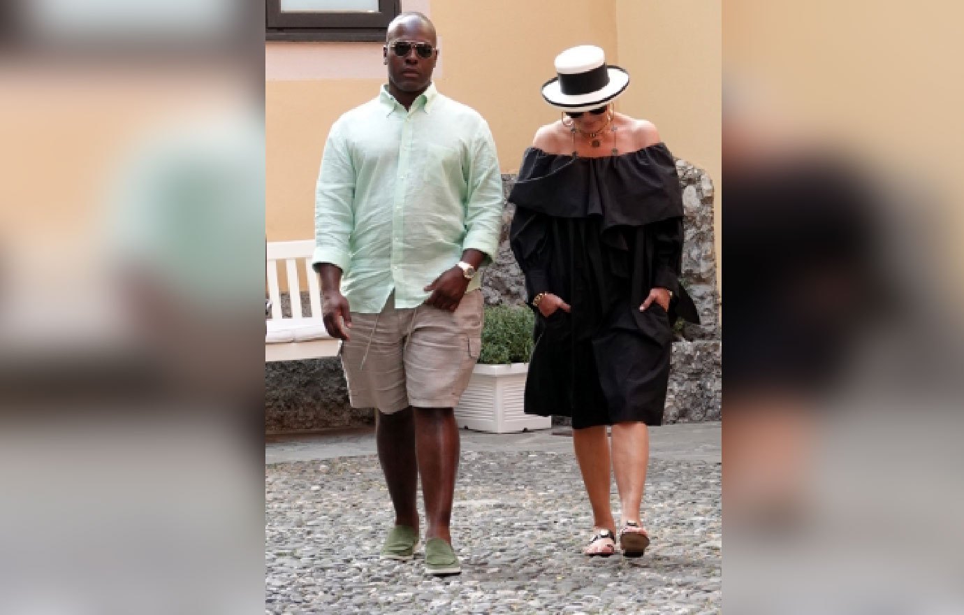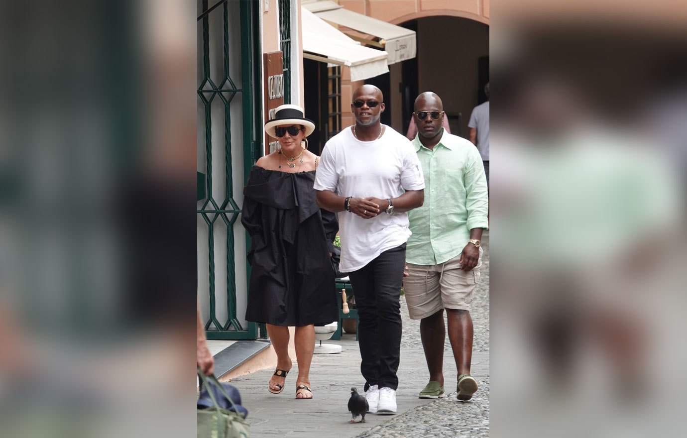 Kris (63) og Corey (38) gengu í gegnum fallega fiskiþorpið á ítölsku rivíerunni. Samt sem áður voru þau ekki að spjalla mikið og líkamstjáningin virtist köld og ekki héldust þau í hendur.